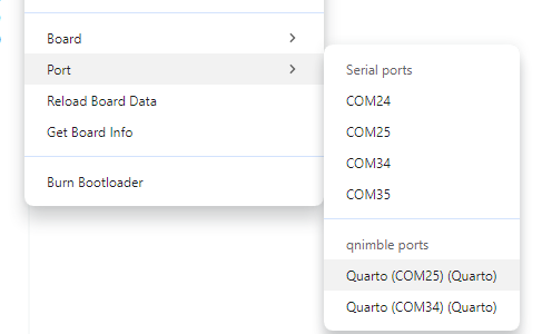 arduino-cli.exe compile -b qnimble:imxrt:quarto YourProgram.ino && arduino-cli.exe upload -b qnimble:imxrt:quarto YourProgram.ino -p COMXX
